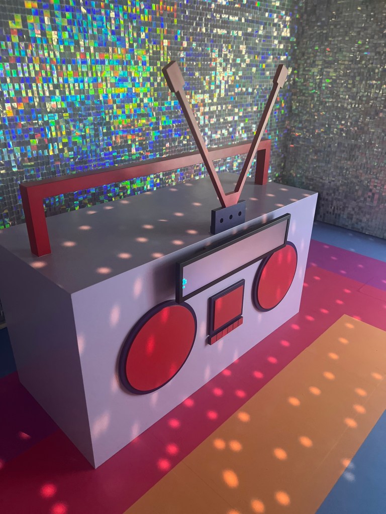 Hello Kitty has a wall dedicated to her as well as a little disco.